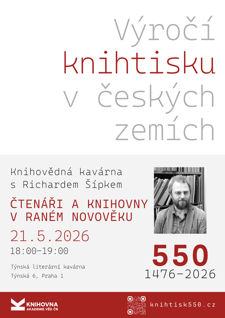 Oslavy 550. výročí českého knihtisku pokračují druhou knihovědnou přednáškou. Čeká nás neformální setkání, tentokrát s knihovědcem Richardem Šípkem z oddělení rukopisů a starých tisků z Knihovny Národního muzea v salonku Týnské literární kavárny.
